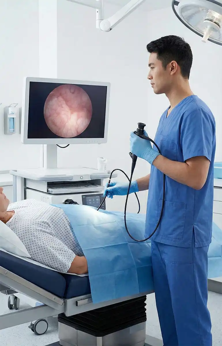 3. Why 'Flexible' Matters: The soft, pliable design causes minimal friction and significantly less discomfort compared to rigid scopes. Performed under local anesthesia (topical gel), the procedure is quick (5-10 mins) and patients can return to normal activities immediately.